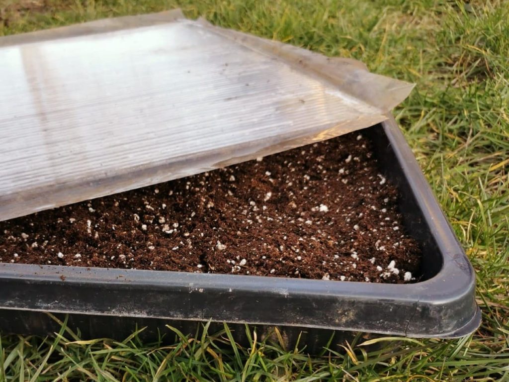 I cover the corms in trays with another layer of wet medium. There’s no need to put a thick layer on, just so that they are completely covered. I cover the trays so that moisture does not evaporate from them too much. The easiest way is to use large plastic gastro containers or boxes with the cover from IKEA. If you are using classic planting trays, they can be covered with pieces of polycarbonate or glass, left over from the construction of the greenhouse.