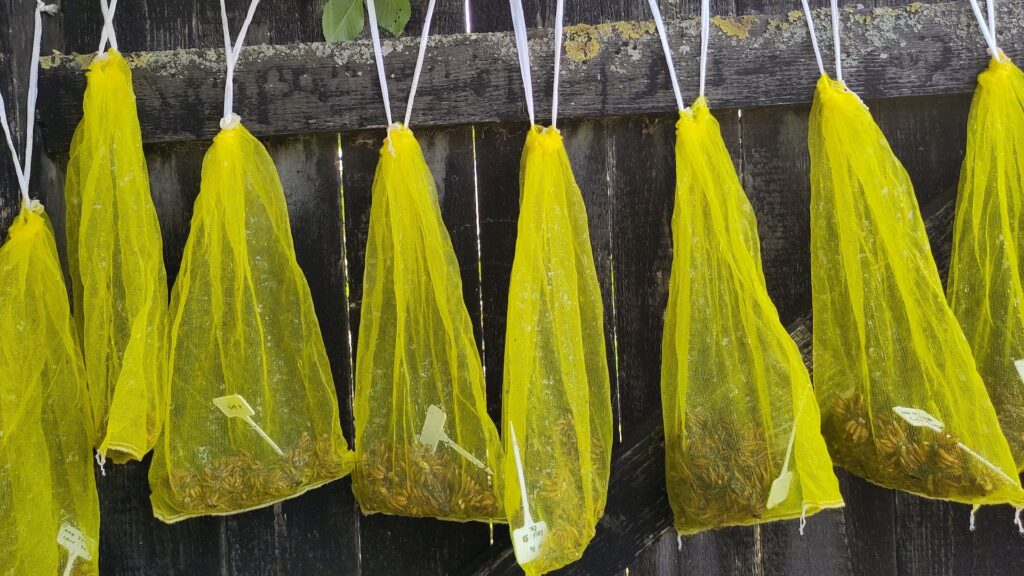 The ideal time to dig up and store the corms is as soon as the leaves turn completely yellow and start to dry out. Nature processes them very quickly and they disappear completely – finding the corms in the ground in this stage can be quite tiresome. In an ideal world, I would wash the dug up corms, disinfect them with an ecological disinfectant (Sanofyt) and leave them to dry completely in a warm, airy place. I have never had time to do this properly, and so far I have always just dug up the corms and left them in the barn all summer long. Despite this, they were quite viable, so even if you don’t have time to process the corms, it is still worth digging them up. If your soil is healthy and your plants are disease-free, it can even be beneficial to leave the soil on them, as it can be populated with beneficial microorganisms that can help the plants.
