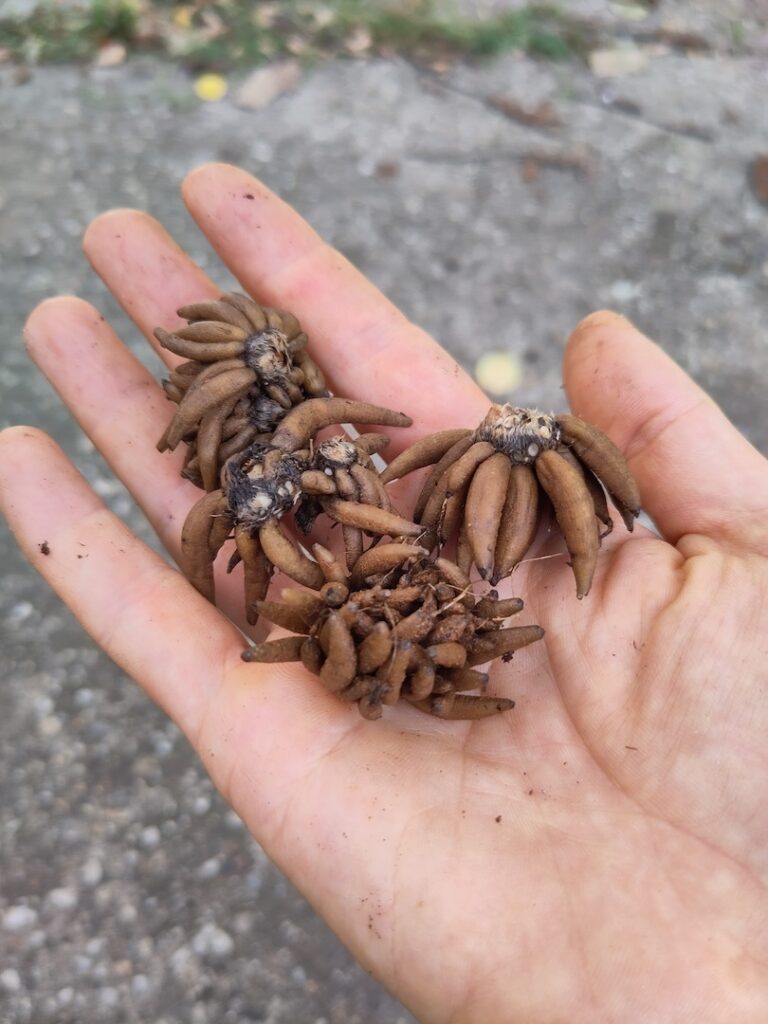 Vykopané hľuzy iskerníkov | Dug-up and dried ranunculus corms